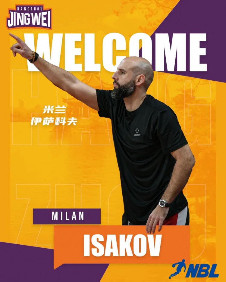 为进一步提升球队竞技水平、增强核心竞争力,经俱乐部管理层研究决定,塞尔维亚籍教练米兰・伊萨科夫(Milan Isakov) 正式担任杭州经纬队主教练,全面执掌球队技战术体系与赛场指挥工作。