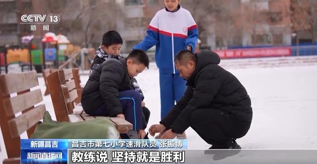 在新疆,冬季校园里的冰场上,总是承载着欢声笑语。昌吉市第七小学开展冰雪运动已有30多年的历史,超过5000名学生在这里学会了速度滑冰。前几天,学校速滑队的孩子们参加了昌吉州中小学生速度滑冰比赛,记者拍下了他们赛前冲刺训练的场景。